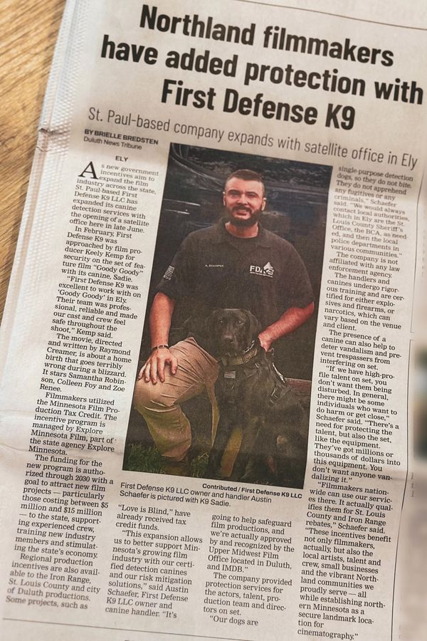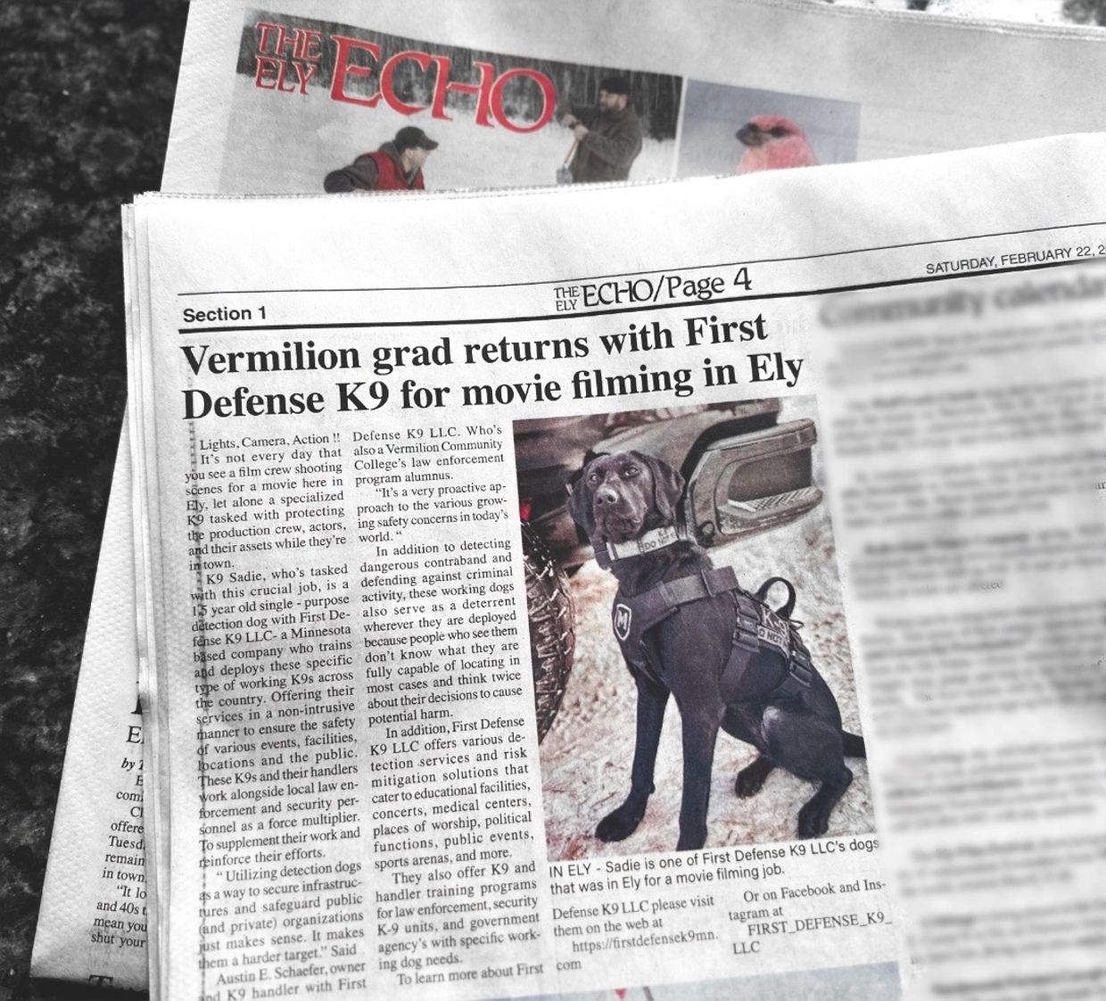 Vermillion Grad Returns With First Defense K9 For Movie Filming in Ely